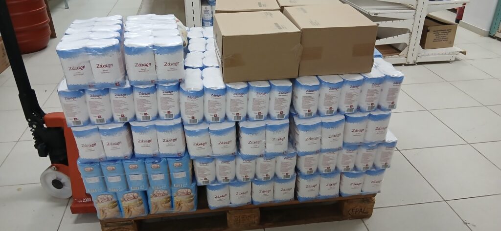 Ένας τόνος όσπρια,ζάχαρη,αλεύρι, μακαρόνια.